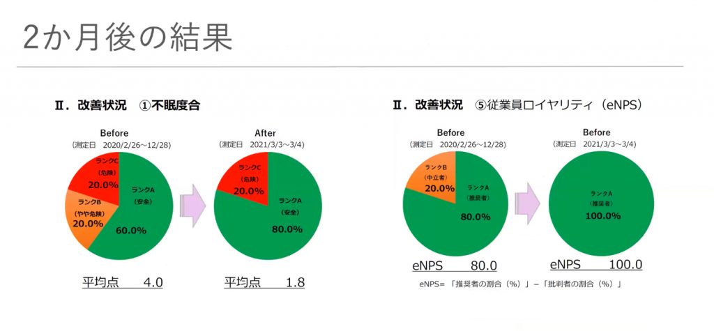 ・不眠度が平均4.0から1.8まで改善